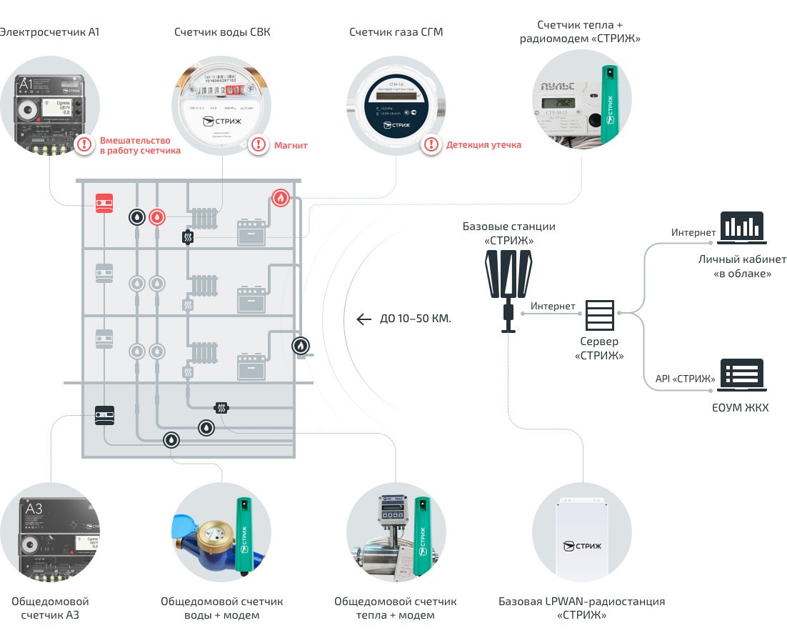 Система «СТРИЖ» разработана специально для сбора показаний приборов учета на больших территориях в масштабах города / поселка.